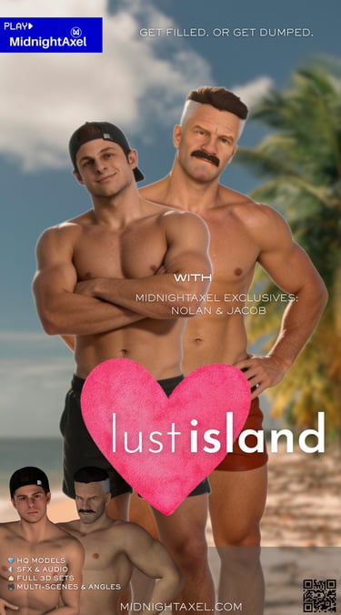 Jacob’s island fantasy turns real the second he’s paired with hot-daddy Nolan, the thick-mustached hunk he’s gotten a hard on for since Day 1. He doesn't wait for the cameras to stop rolling before he’s on his knees, eager to get Nolan's hard dick in his mouth. On this beach, the only thing getting dumped is a massive load down Jacob's throat.